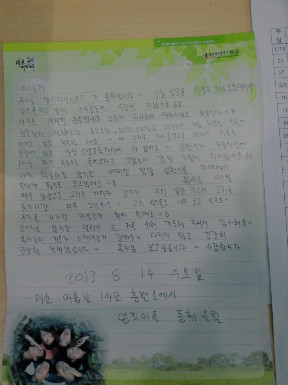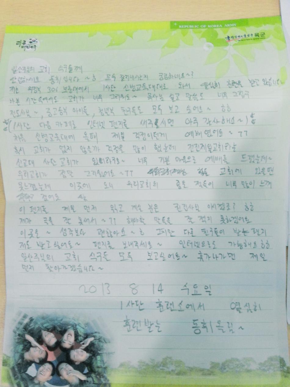동휘형제!! 훈련 생활 잘 하도록 기도부탁드려요
