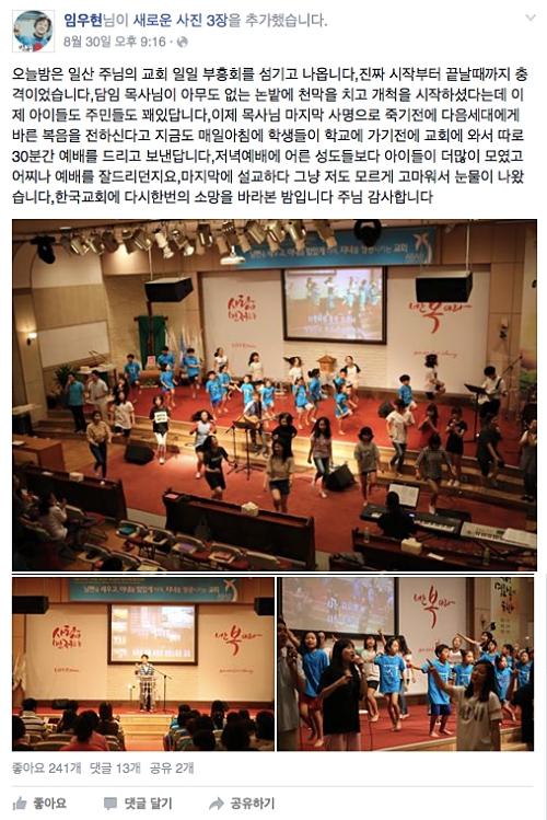 부흥회의 감동적인 후기를 목사님께서 페이스북에 올려주셨는데요~