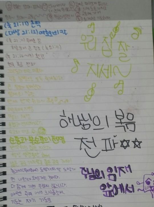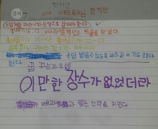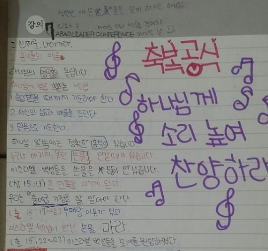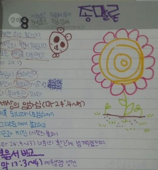 설교를 집중하여 듣고 기록하는
