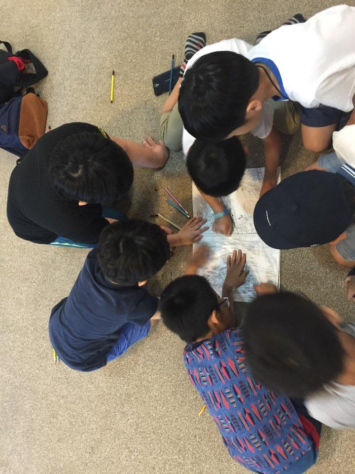 서로 스케치북에 낙서를 하고 여자팀 남자팀이 각자 마구 낙서를 한 뒤