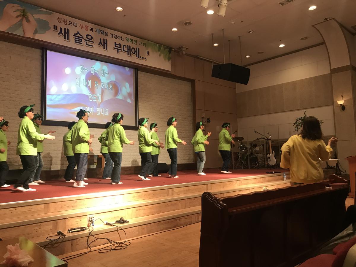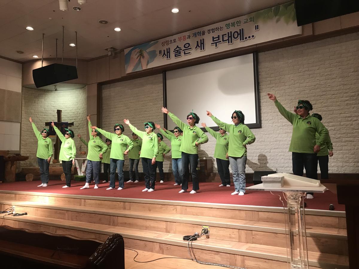 축하 공연하는 우리의 권사님들