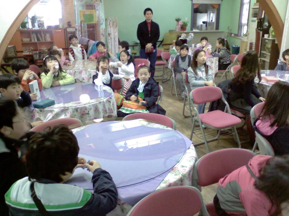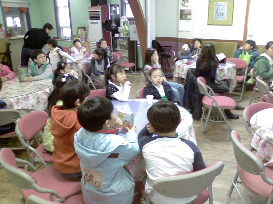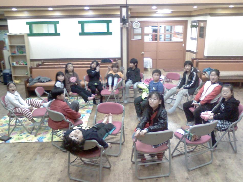 - 세 번째 사진은 매 주 토요일 저녁 7시에 열리는 리더 모임 사진입니다. 13명의 어린이가 리더 모임을 가졌습니다.