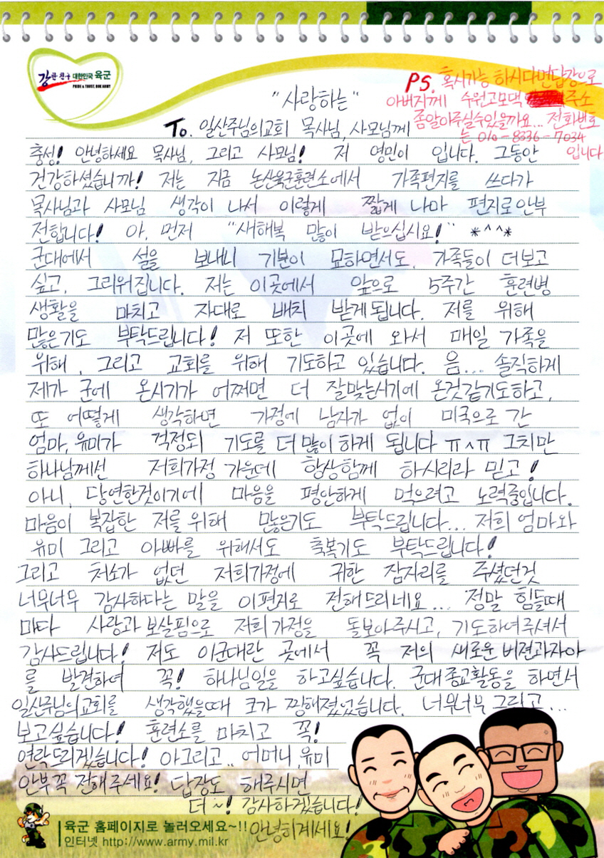 [군사우편]양영민 형제 소식