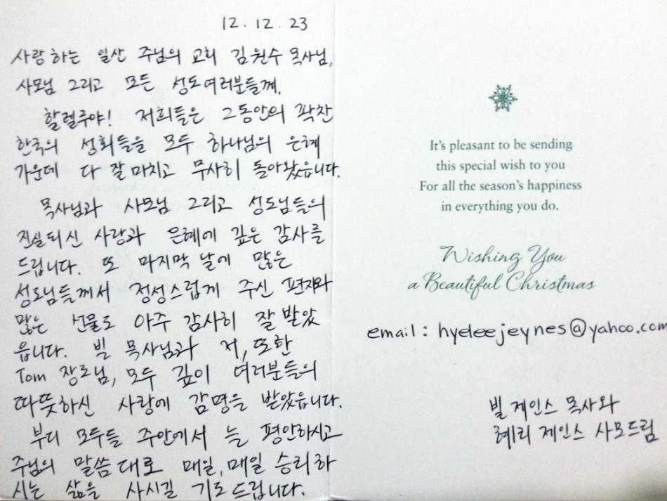 빌제인스 목사님~ 카드도착^^