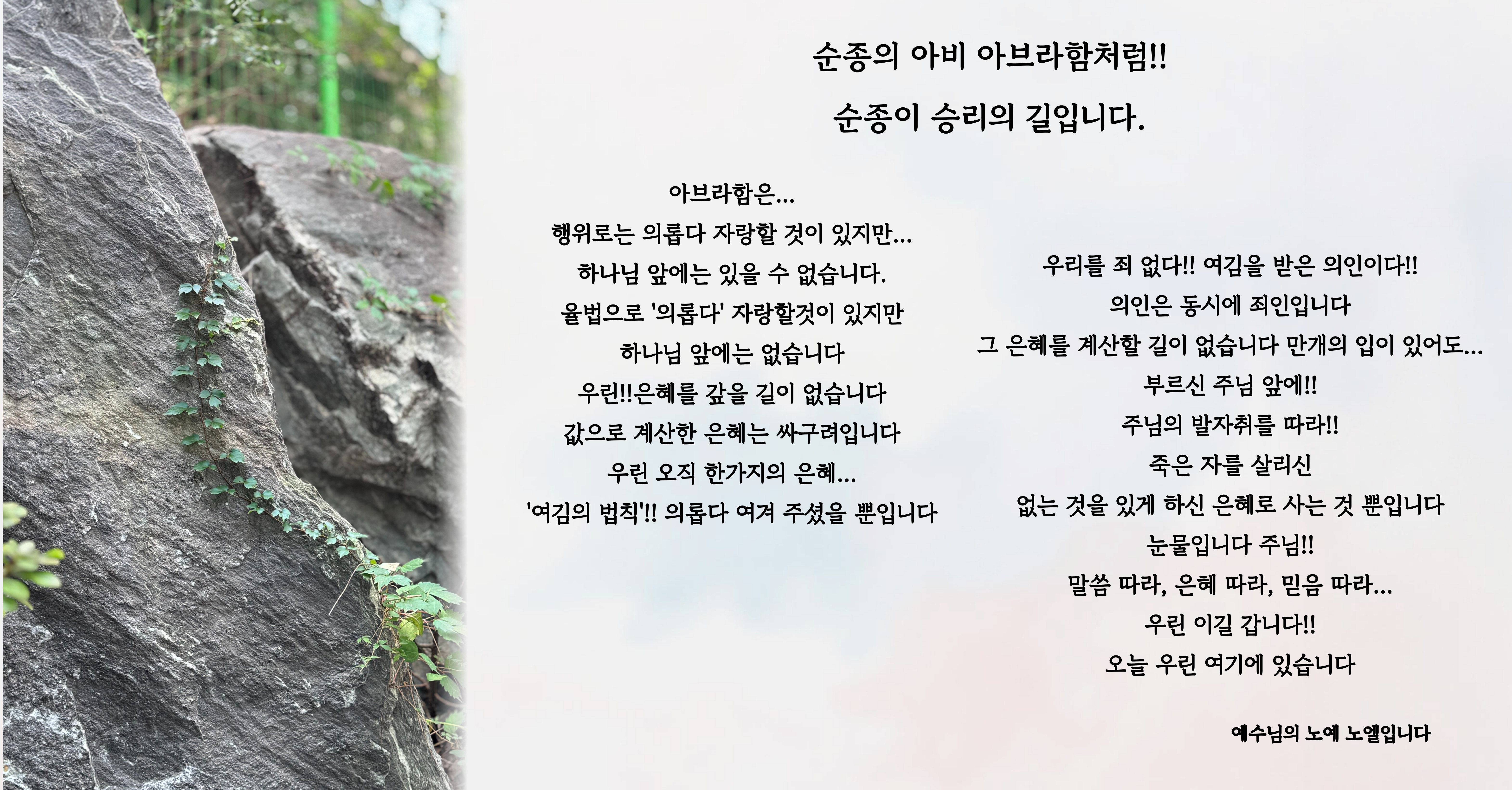 순종의 아비 아브라함처럼!! 순종이 승리의 길입니다.
