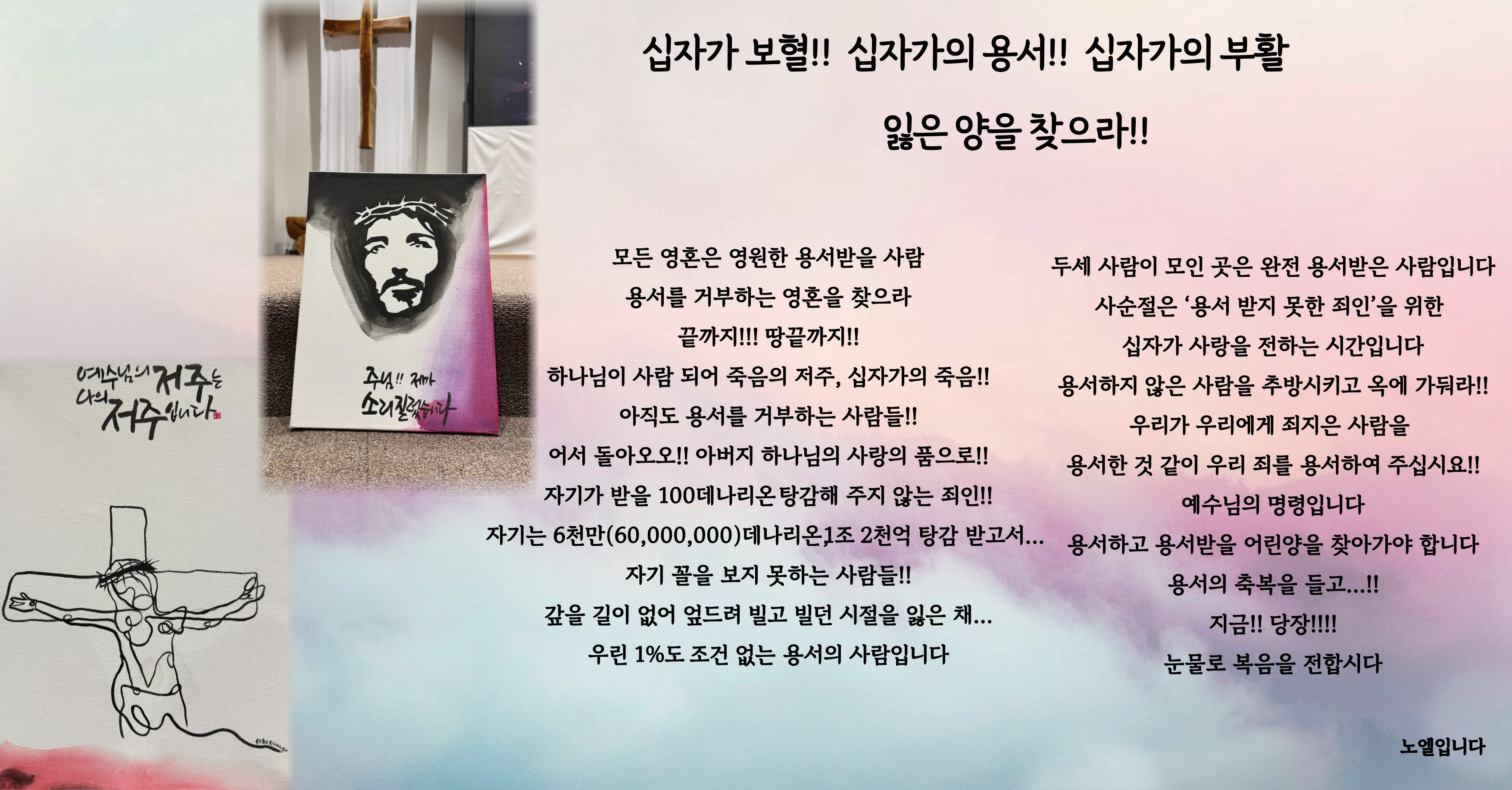 십자가 보혈!!십자가의 용서!! 십자가의 부활!! 잃은 양을 찾으라!!